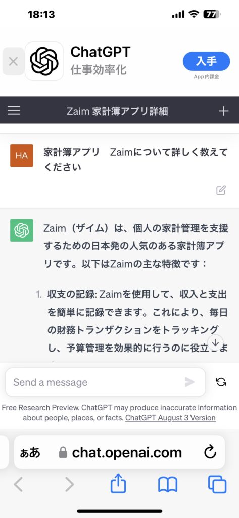 Zaimってどんなアプリなの?というのを急ぎチャットGPIさんに聞いてみました