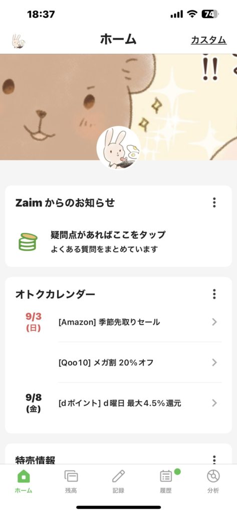 ホーム画面で私の使う媒体のお得情報まで教えてくれてます。
