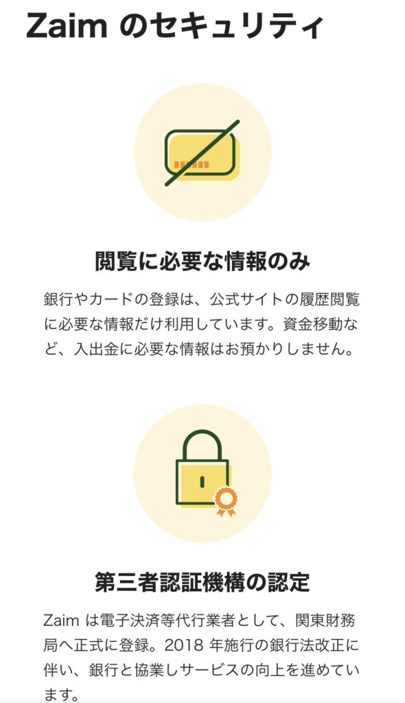 Zaimはセキュリティに注意を払い、個人の財務情報を保護します。